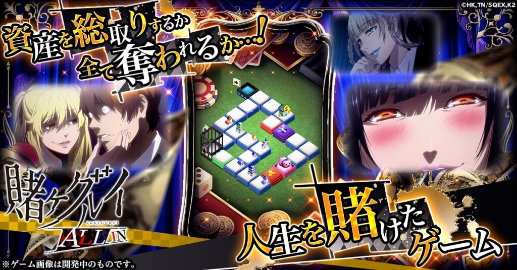 賭ケグルイ ALL IN」は、CTW株式会社がG123プラットフォームで提供する戦略すごろくゲームです。TVアニメ・漫画「賭ケグルイ」(河本ほむら原作)を原作とし、2026年3月23日に正式サービスが開始しました。