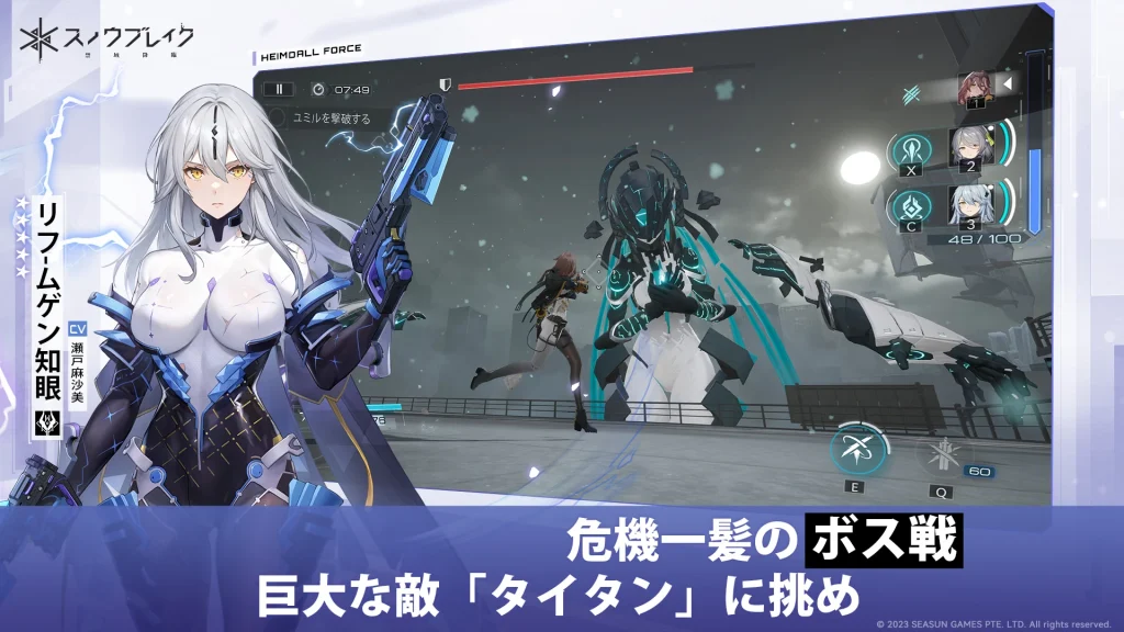 雪に覆われた近未来都市という世界観も新鮮で、戦闘中に舞う雪の演出など、細部へのこだわりが随所に感じられます。キャラクターも可愛いだけでなく、それぞれに個性があって愛着が湧きやすい設計になっています。