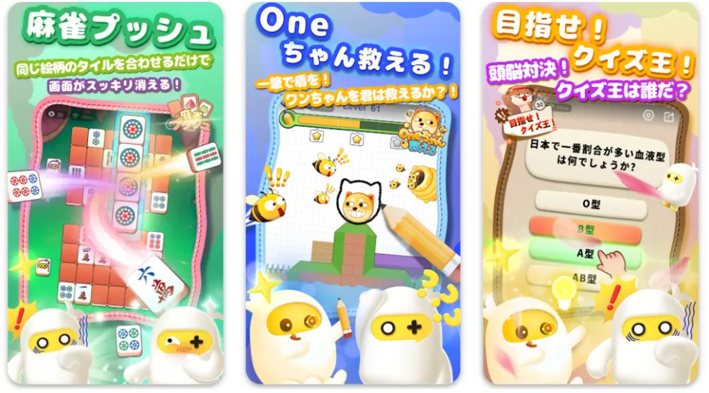 ✓ 10種類以上のミニゲーム:4色の猫、ビンゴ、パズルなど多彩